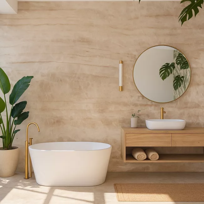 Es una pieza perfecta para proyectos que buscan equilibrar lo natural y lo contemporáneo, ideal para espacios que deseen transmitir serenidad, sofisticación y una conexión con la belleza cruda y auténtica de la naturaleza.